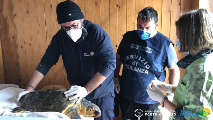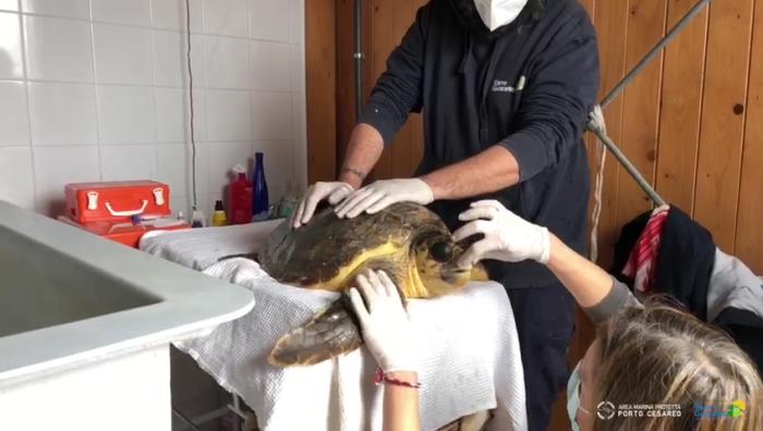 Preso l’animale, scatta la staffetta della solidarietà. Gli operatori di Porto Cesareo portano la Caretta caretta presso la riserva di Torre Guaceto e i colleghi del Consorzio la ricoverano presso il proprio centro recupero tartarughe marine attivo dal 2016.