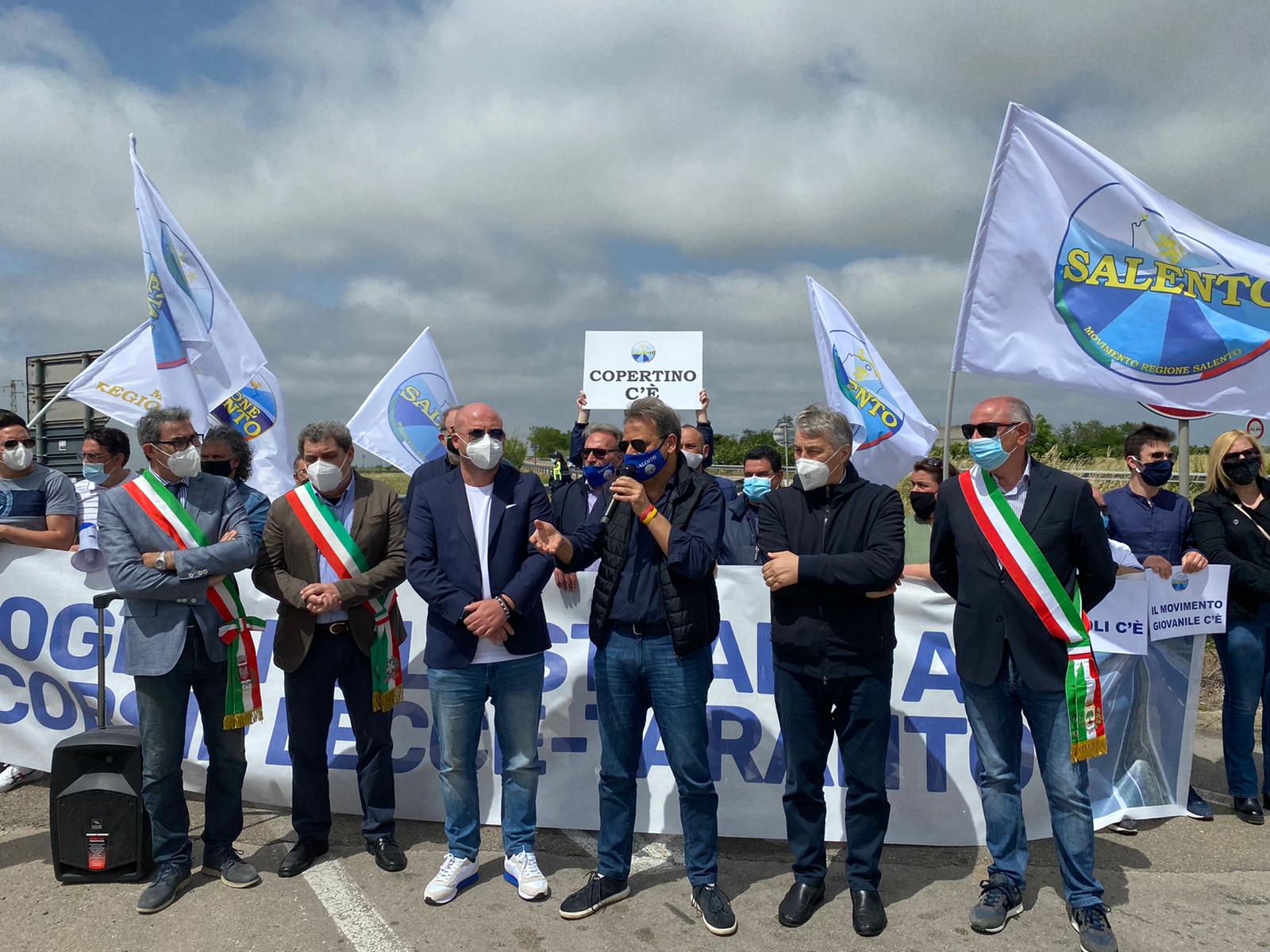 Presenti al sit-in anche i Consiglieri regionali Antonio Gabellone e Luigi Caroli di Fratelli d’Italia e il Consigliere provinciale del MRS Fernando Leone e poi i Sindaci di Veglie Claudio Paladini, di Manduria Gregorio Pecoraro, di San Pancrazio Salentino Salvatore Ripa, quello di Salice Tonino Rosato e Giuseppe Tarantino di San Marzano di San Giuseppe.