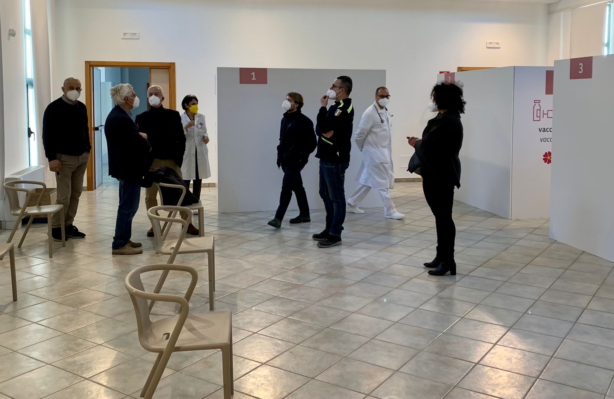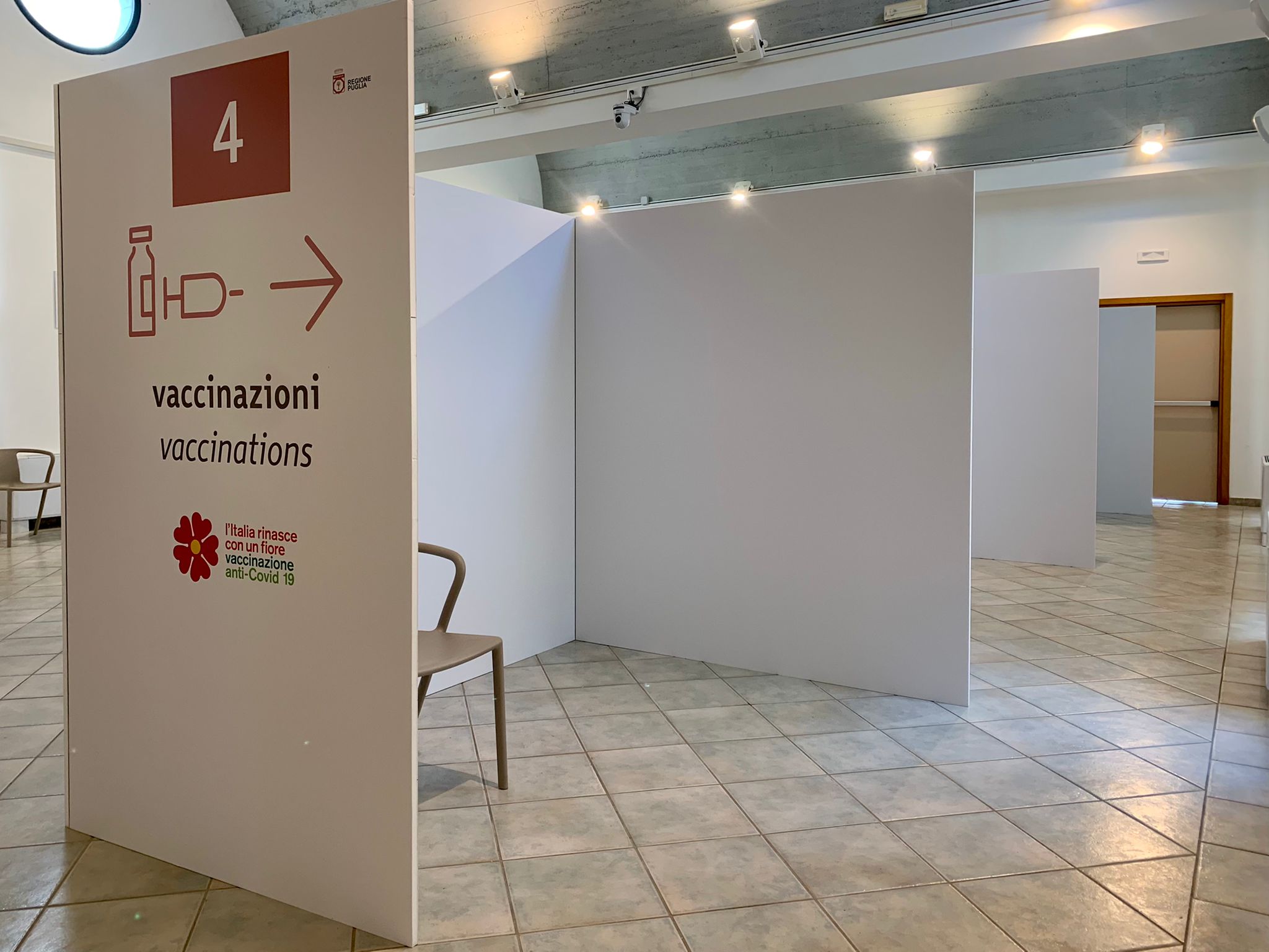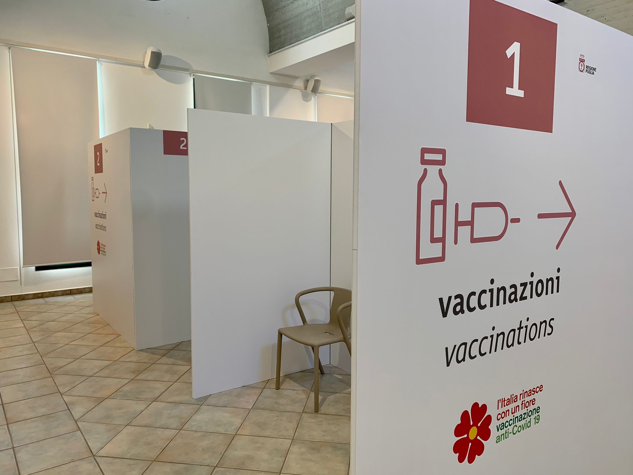 L’ampia struttura, che costituirà l’hub vaccinale di riferimento per il distretto di Campi Salentina, è dotata di una sala di attesa e di tre postazioni per la registrazione dei pazienti, dove si valuterà lo stato di salute sulla base delle patologie e delle terapie assunte e l’eventuale non idoneità. Quattro, invece, le postazioni dove verrà effettuato il vaccino più una sala di osservazione dove, ogni cittadino che avrà ricevuto il vaccino, attenderà per 15 minuti prima di poter andare via. All’esterno, oltre alle aree destinate ai parcheggi, è stato allestito un’area di pre-filtraggio che servirà per evitare assembramenti all’interno della struttura e consentire un percorso agevole e guidato alla vaccinazione. Tutti gli aspetti logistici e strutturali sono stati insomma curati per una somministrazione del vaccino confortevole e in piena sicurezza.