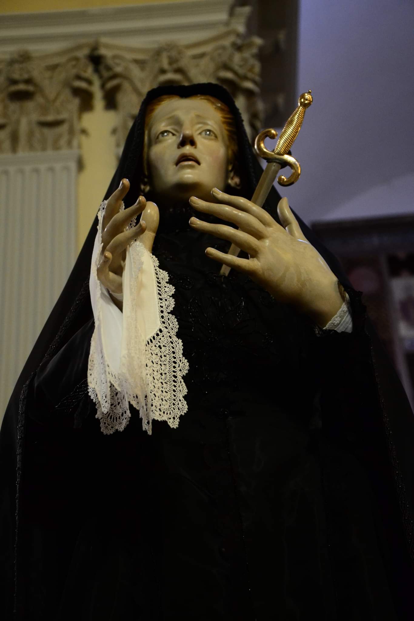 La statua in cartapesta della Desolata grottagliese, di un’algida bellezza nordica – come definita dalla storica dell’arte Letizia Gaeta – dal punto di vista artistico è tra le più particolari rappresentazioni del Salento. Si narra che la statua sia stato un dono della famiglia Sanarica che la custodiva in casa in via San Pietro e Paolo. Da allora durante la processione il corteo fa una breve sosta nella stessa via e la Statua viene girata verso il civico 42 mentre il coro intona i canti di passione, tipici della Settimana Santa.