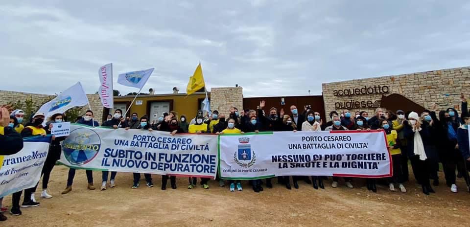 Questa mattina nei pressi del Depuratore di Porto Cesareo c’è stato il sit-in per chiedere che i lavori della rete fognaria siano terminati e di conseguenza sia attivato il depuratore.