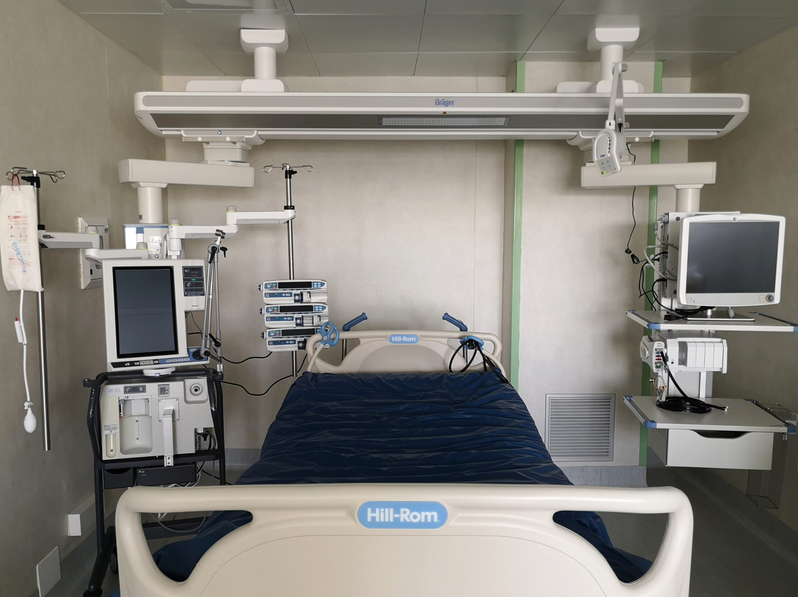 Prima delle postazioni singole, la nuova Rianimazione ospita una stanza, cui si accede tramite una porta scorrevole: si tratta di un’area di ‘bonifica’ riservata alle indispensabili operazioni di igiene e pre-trattamento cui il degente viene sottoposto prima di essere affidato alle cure dei medici. C’è anche una sala della accoglienza, riservata ai colloqui con i parenti dei ricoverati che decidano per la donazione degli organi del congiunto. Una stanza apposita è dedicata alla conservazione dei farmaci che vengono somministrati ogni giorno per le terapie.
