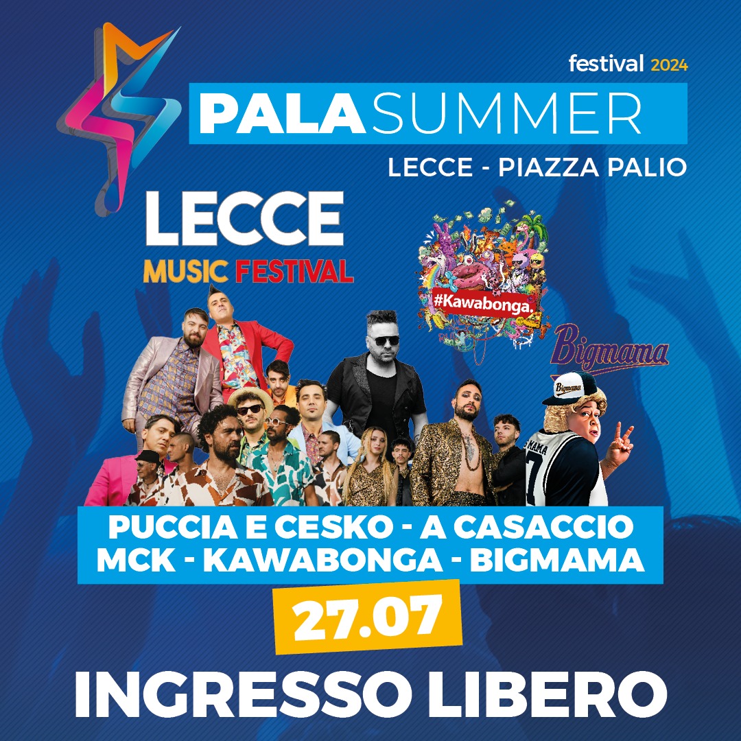 • 27 luglio: Lecce Music Festival con artisti come Puccia, Cesko, Accasaccio, Mck, Kawabonga e Bigmama.