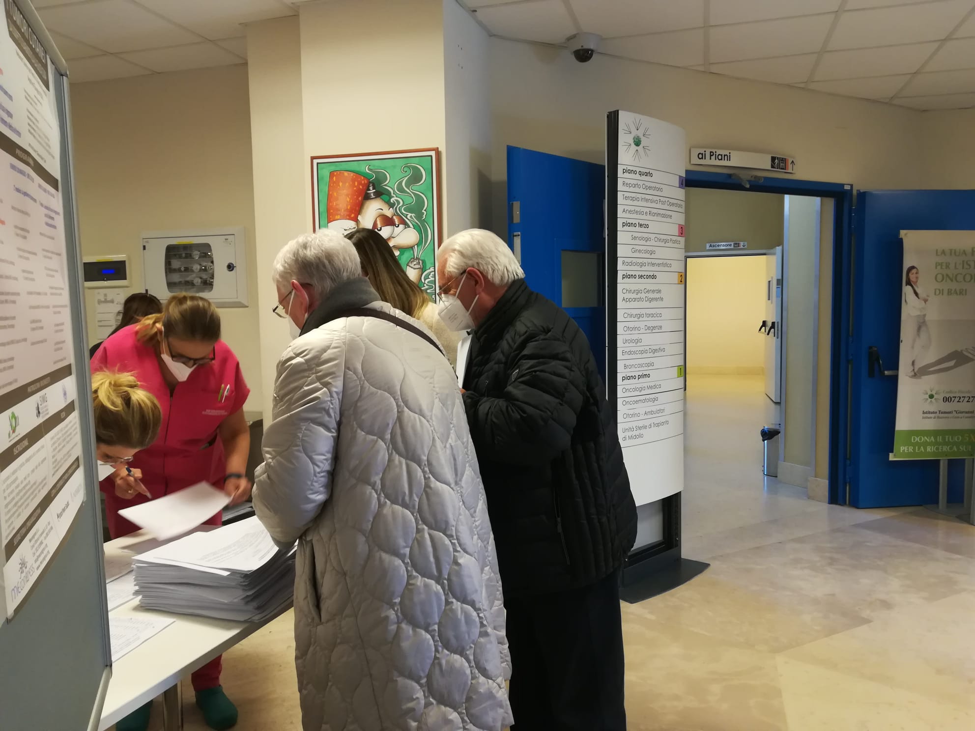 Ha preso il via il lungo fine settimana di vaccini all’Istituto Tumori di Bari. Oggi si vaccina dalle ore 14 alle 24, sabato e domenica dalle ore 8 alle 24. Sono attesi circa 600 pazienti oncologici e onco-ematologici e i rispettivi caregiver e conviventi, per un totale di oltre 2.000 persone. Le operazioni sono coordinate direttamente dagli oncologici e dagli onco-ematologi che hanno in cura i pazienti.